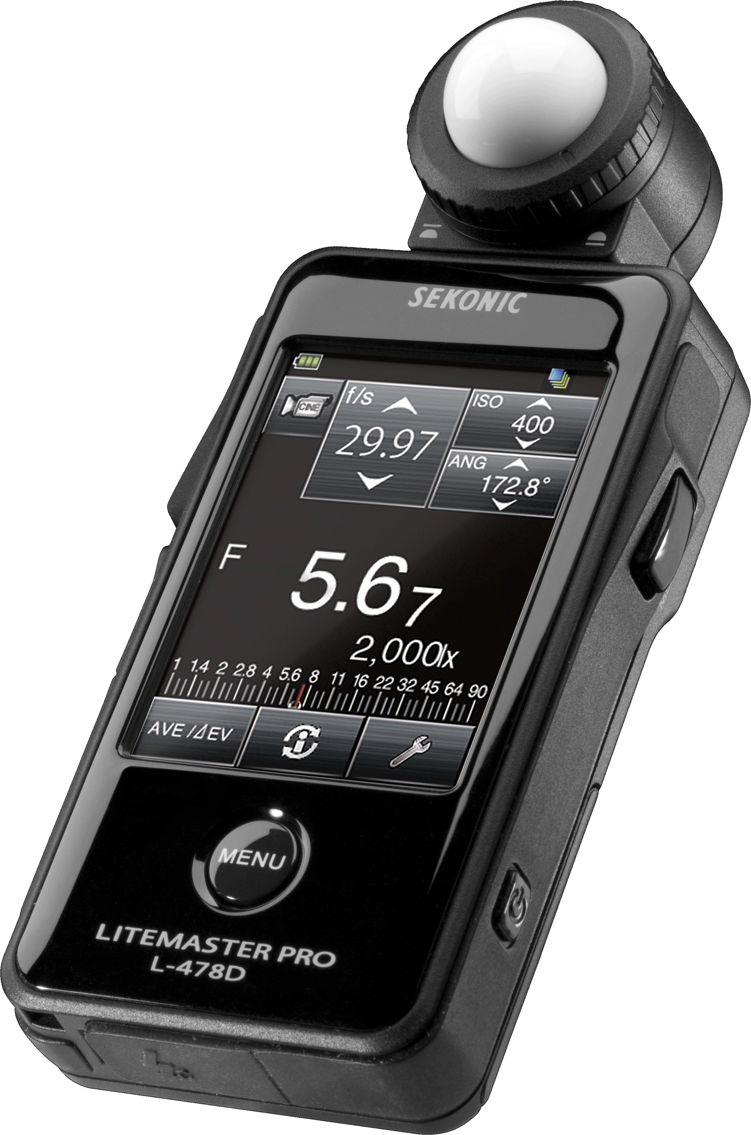 A compact meter with an intuitive touchscreen interface. Versatile for both photography and cinematography, with spot metering capability when fitted with an optional 5° viewfinder. The L-478D is a great step-up for cinematographers who need custom frame rates and shutter angles.